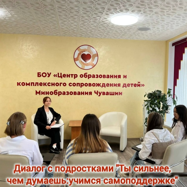 24 сентября 2025 года педагог-психолог БОУ «Центр образования и комплексного сопровождения детей» Минобразования Чувашии Юлия Эдуардовна Михатайкина провела онлайн-диалог с подростками под названием «Ты сильнее, чем думаешь: учимся самоподдержке!». Мероприятие было организовано с целью формирования у участников навыков уверенного поведения, эмоциональной устойчивости и конструктивного реагирования в стрессовых ситуациях.