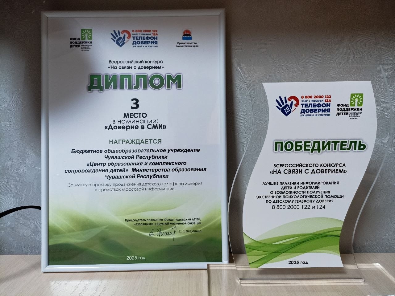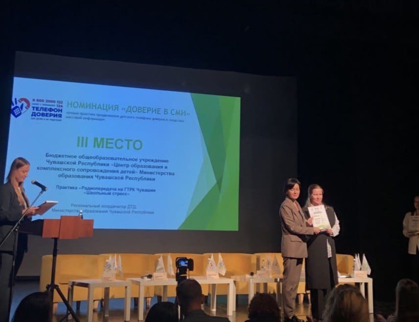 Педагоги-психологи БОУ «ЦОиКСД» Минобразования Чувашии Лариса Кудрявцева и Виктор Анищенков заняли почетное 3-е место в престижном Всероссийском конкурсе «На связи с доверием», организованном фондом поддержки детей, находящихся в трудной жизненной ситуации. Церемония награждения прошла на XVI Всероссийском форуме «Вместе — ради детей! Быть рядом!» в Ульяновске. Это признание высочайшего профессионализма и преданности делу наших специалистов. Мы от всей души поздравляем коллег и желаем им дальнейших успехов!