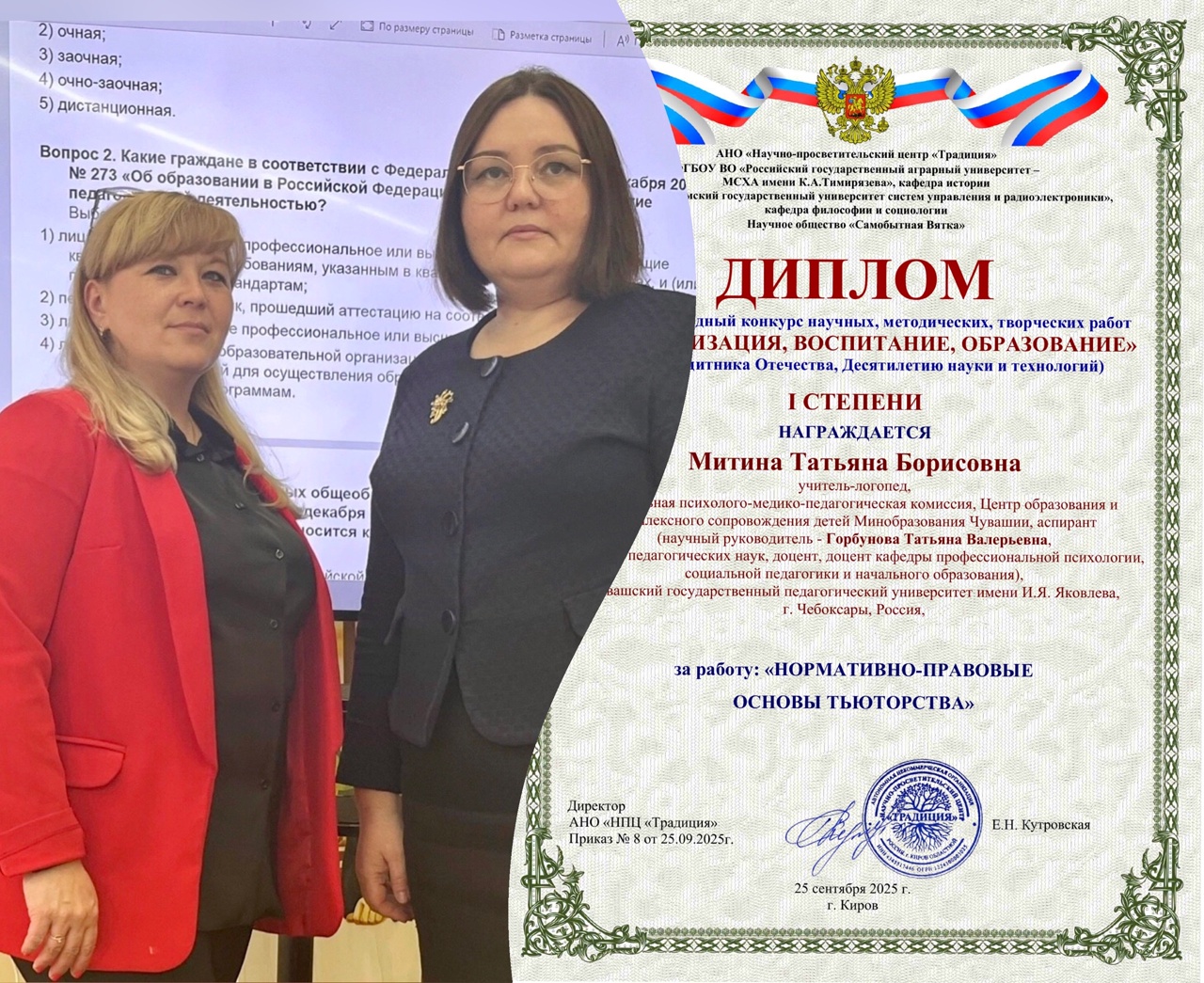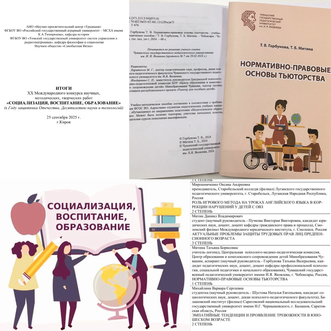 В сентябре 2025 года в г. Киров состоялся XX Международный конкурс научных, методических, творческих работ «СОЦИАЛИЗАЦИЯ, ВОСПИТАНИЕ, ОБРАЗОВАНИЕ».
