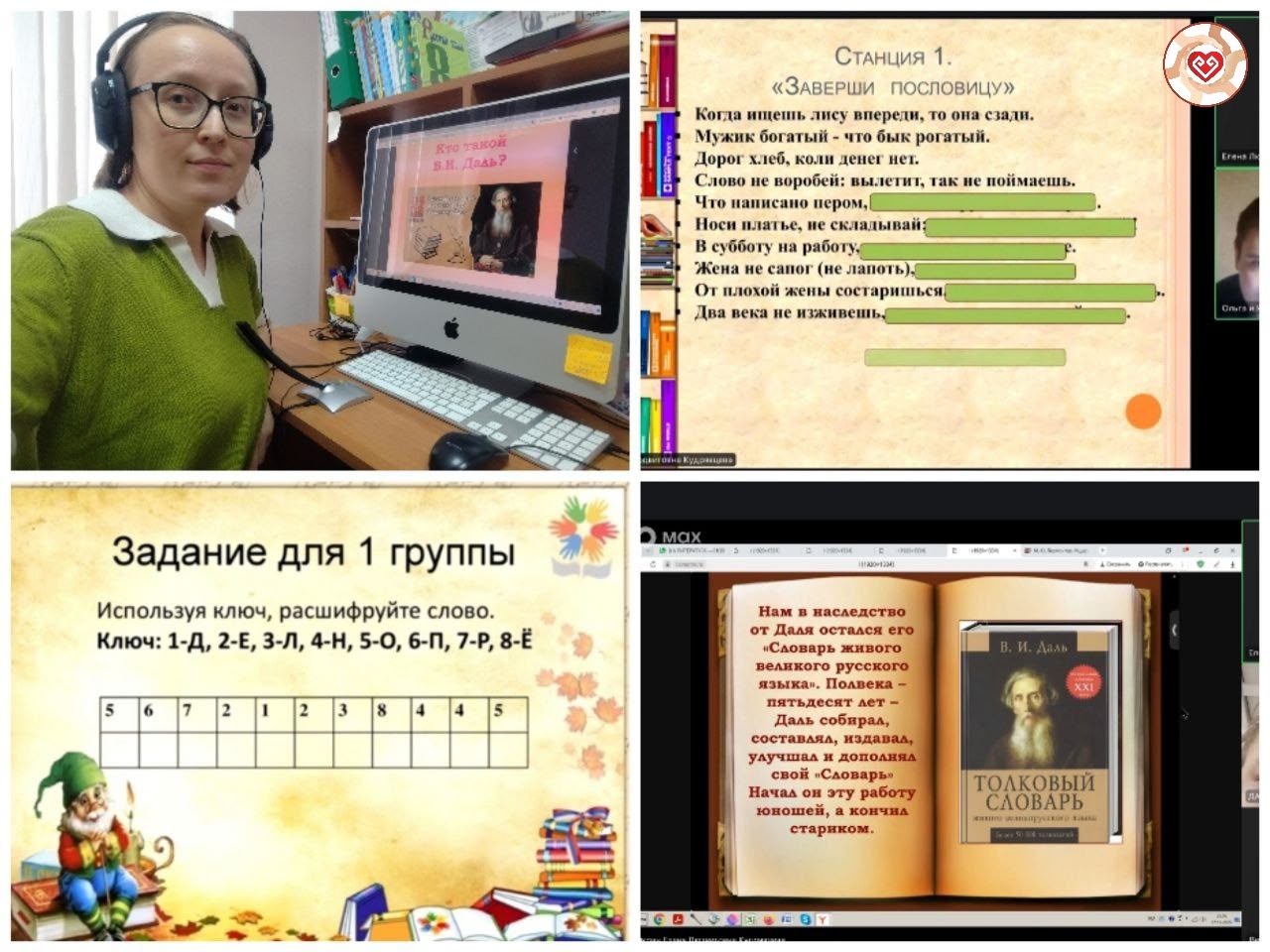 В рамках открытия учителя русского языка и литературы РЦДО Н.Н. Евдокимова, М.А. Егорова и Е.Л. Кудрявцева подготовили и провели информационное сообщение "Кто такой В. И. Даль?", в котором рассказали учащимся об основных этапах жизни и творчестве знаменитого лексикографа, а также отметили его неоценимый вклад в развитие русской словесности.