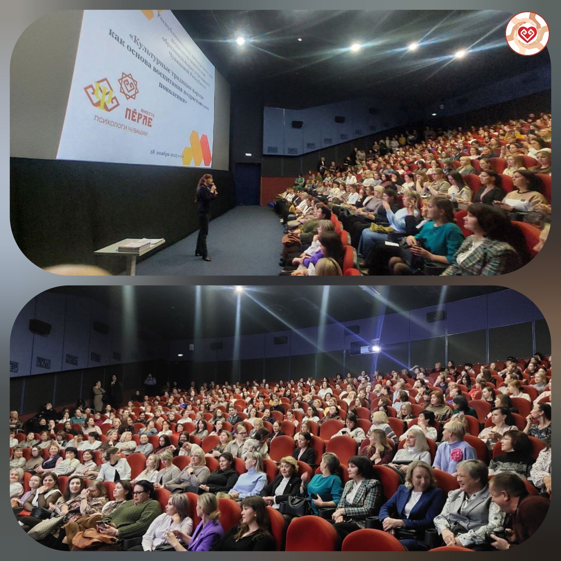 В рамках празднования Всероссийского дня психологов 18 ноября состоялся Республиканский кинотренинг для педагогов-психологов образовательных организаций Чувашской Республики под названием «Культурные традиции народа как основа воспитания подрастающего поколения». Присутствовало более 400 человек со всех муниципальных округов. Этот значимый и вдохновляющий тренинг стал настоящим событием в профессиональной жизни многих наших уважаемых коллег. Заместитель министра образования Чувашской Республики, Лежнина Марина Николаевна, тепло поприветствовала всех собравшихся и подчеркнула важность мероприятий подобного формата для профессионального роста и повышения квалификации педагогов-психологов региона. Кандидат педагогических наук, доцент Чувашского республиканского института образования, Андреева Надежда Николаевна, поделилась своим богатым профессиональным опытом и представила интересные методики интеграции культурных традиций в образовательный процесс, направленные на гармоничное развитие личности обучающихся. Участники кинотренинга просмотрели два ярких и познавательных короткометражных фильма: Завершился кинотренинг торжественным награждением наиболее активных и инициативных педагогов-психологов. Им были вручены благодарственные письма за высокий профессионализм, значительный вклад в психолого-педагогическое сопровождение несовершеннолетних, формирование интеллектуального, культурного и нравственного развития их личности. Этот день запомнился всем участникам не только интересным содержанием мероприятия, но и теплом человеческого общения, обменом ценным опытом и позитивными эмоциями! | |