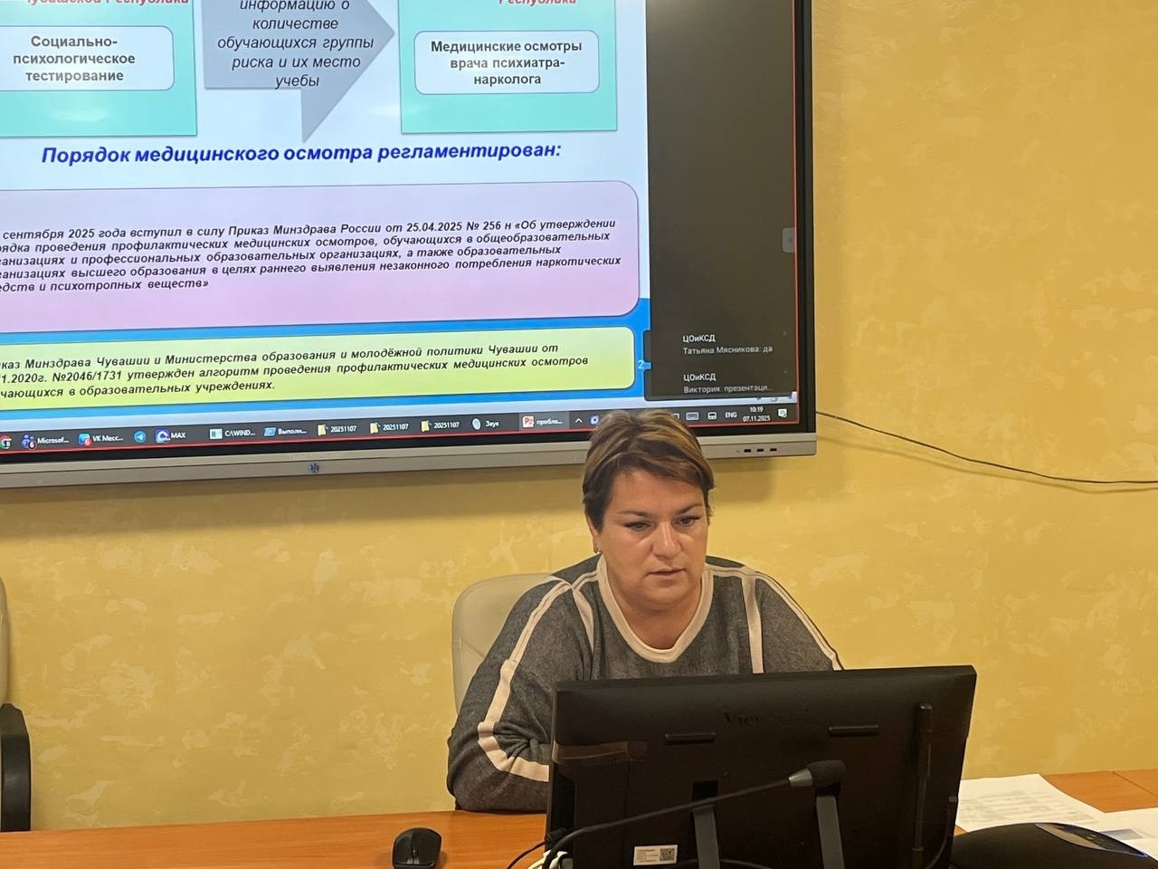 07 ноября 2025 года в БОУ «Центр образования и комплексного сопровождения детей» Минобразования Чувашии прошел вебинар по итогам социально-психологического тестирования по единой методике в 2025-2026 учебном году. С темой «Результаты социально-психологического тестирования по единой методике в 2025-2026 учебном году в Чувашской Республике» выступила педагог-психолог БОУ «ЦОиКСД» Минобразования Чувашии Степанова Ирина Эдуардовна. Дорофеева Лилия Георгиевна - заведующая диспансерно-поликлиническим отделением №2 БУ «Республиканского наркологического диспансера» Минздрава Чувашии рассказала об особенностях организации профилактических медицинских осмотров по результатам СПТ, дала рекомендации по проведению мотивационной кампании для обучающихся и родителей. Об организации работы педагога-психолога в образовательной организации по итогам СПТ ЕМ выступила Ефимова Наталия Николаевна - кандидат психологических наук, педагог-психолог МБОУ «СОШ 27» г. Чебоксары. Наталия Николаевна поделилась опытом организации работы в своей школе и рассказала о способах профилактики, которые реализуют иные образовательные организации. Об особенностях работы по итогам СПТ ЕМ с детьми в замещающих семьях подробно рассказала педагог-психолог БОУ «ЦОиКСД» Минобразования Чувашии Шмелева Наталия Васильевна. Также своим опытом проведения СПТ ЕМ поделились педагог-психолог Яльчикского ППМС-центра Сайкина Людмила Александровна и педагог-психолог МБОУ «Яльчикская СОШ им. Героя России А. М. Петрова» Маркова Светлана Ильинична. | |