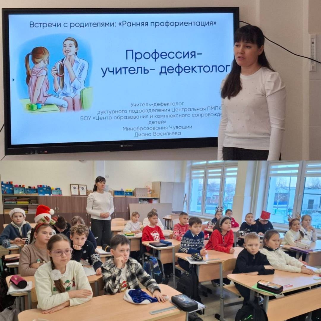24 декабря 2025 года учитель-дефектолог структурного подразделения Центральная ПМПК БОУ «Центр образования и комплексного сопровождения детей» Минобразования Чувашии Диана Васильева провела увлекательное профориентационное занятие для учеников 3 н класса МБОУ "НОШ №2" г. Чебоксары, посвященное профессии учителя-дефектолога.