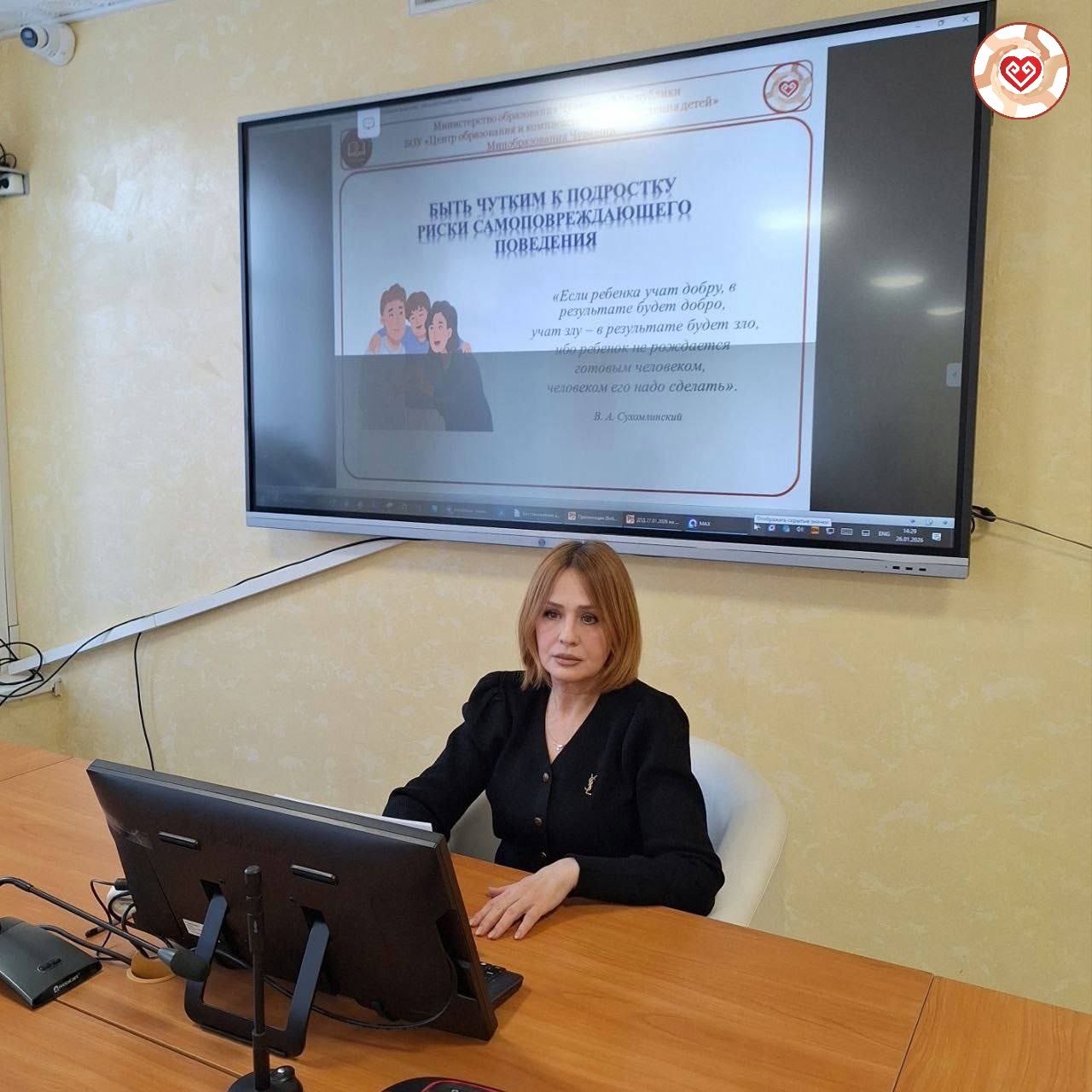 В рамках вебинара выступила педагог-психолог "Центра образования и комплексного сопровождения детей" Молева Татьяна Анатольевна с темой "Быть чутким к подростку. Риски самоповреждающего поведения".