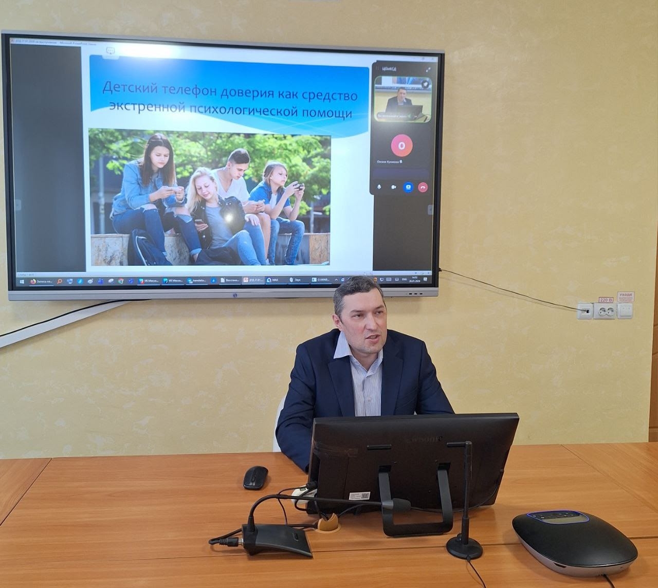 Также свою презентацию представил педагог-психолог "Центра образования и комплексного сопровождения детей" Анищенков Виктор Борисович, который рассказал о "Информировании детей и их родителей о возможности получения экстренной психологической помощи по детскому телефону доверия&quo