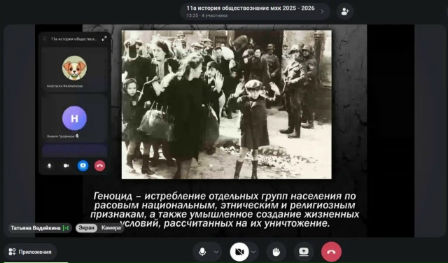 В Республиканском центре дистанционного образования прошли важные и значимые уроки мужества для 5 – 11 классов, которые провела учитель истории Вадейкина Татьяна Владимировна. Урок начался с рассказа о событиях Холокоста и трагической судьбе евреев, цыган, политических заключенных и представителей д