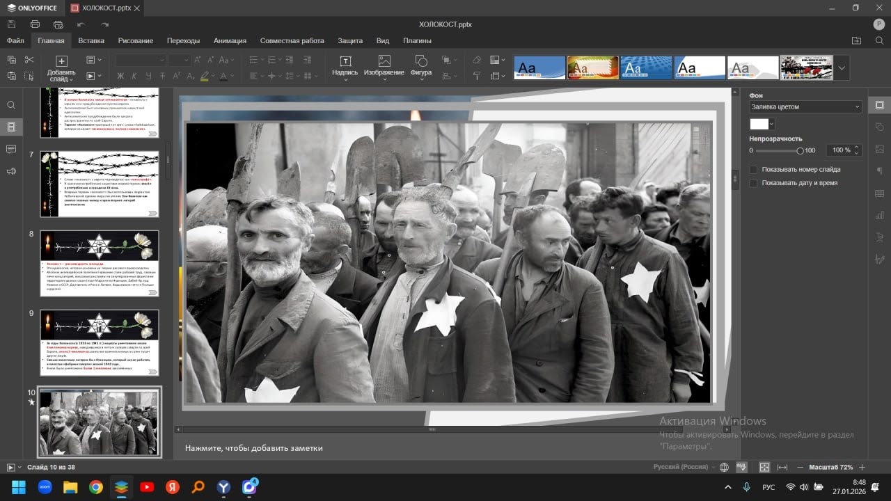 Международный день памяти жертв Холокоста отмечается ежегодно 27 января, именно в этот день в 1945 году советские войска освободили концентрационный лагерь Освенцим-Биркенау. В этот день мы вспоминаем миллионы погибших, чтим память о них и учимся извлекать уроки из прошлого, чтобы предотвратить повторение подобного кошмара.