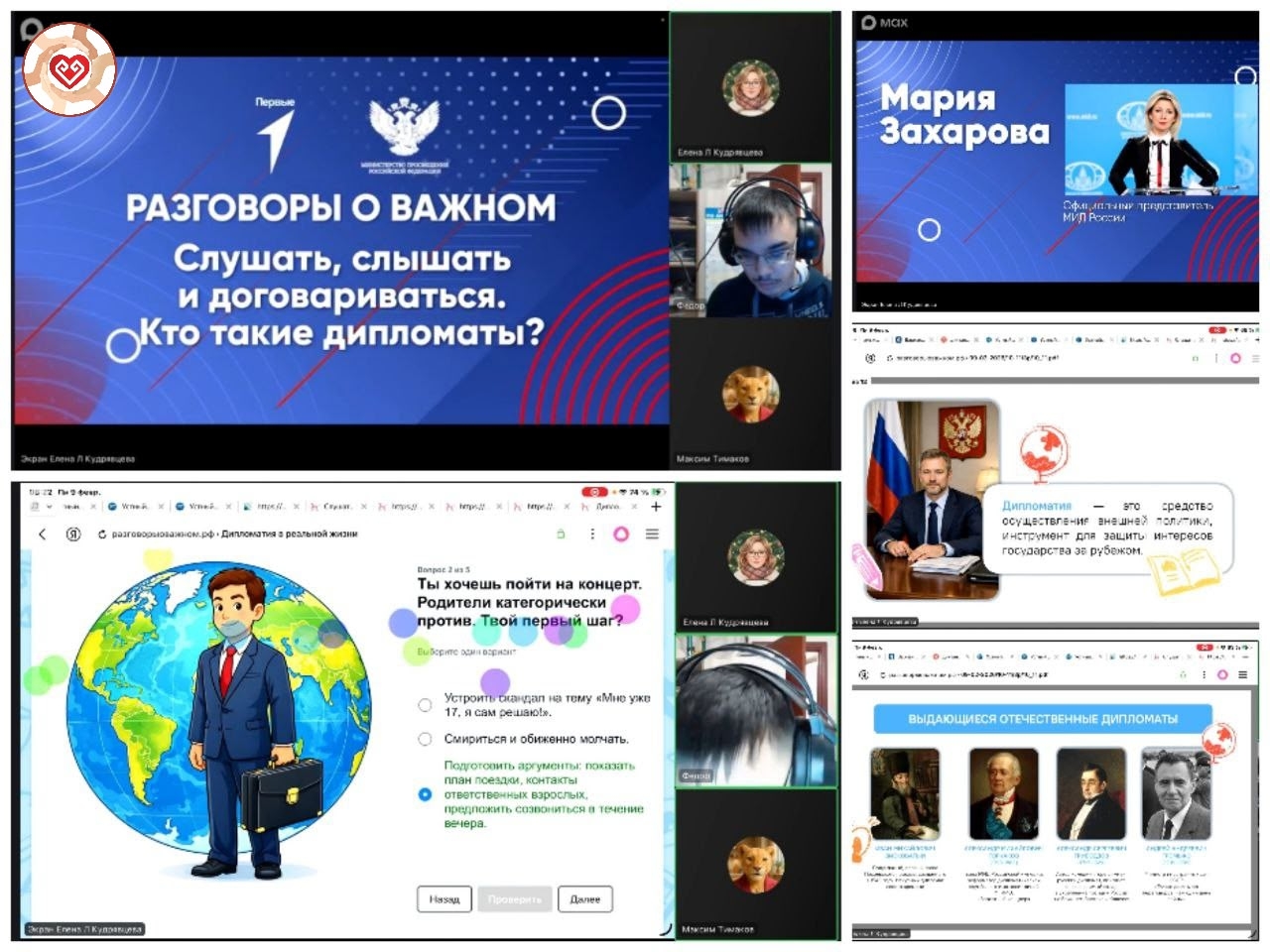 Участники занятия узнали о ключевых качествах, необходимых для успешной дипломатической деятельности, таких как аналитический склад ума, умение находить компромиссы, стрессоустойчивость и глубокое понимание международных отношений. Также вспомнили о выдающихся отечественных дипломатах. Особенно важна роль дипломата в защите интересов страны на международной арене.