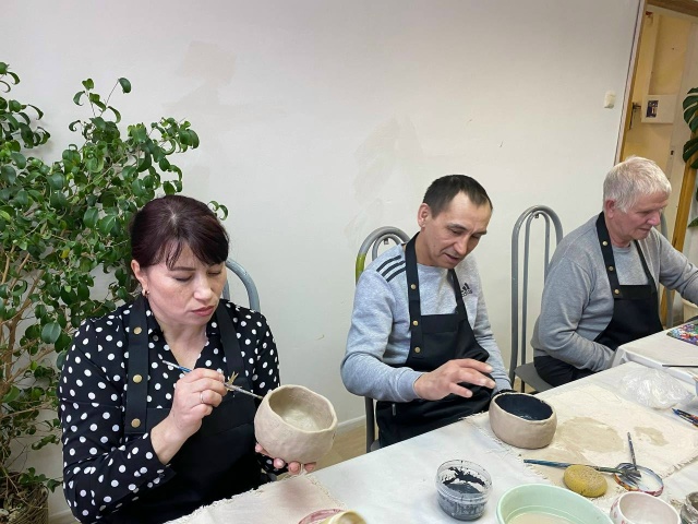 Руководитель центра Галина Семенова, художник и керамист, предложила участникам на выбор два мастер-класса. Одни увлеченно рисовали, чувствуя себя настоящими художниками, другие с легкостью освоили основные техники создания керамических изд