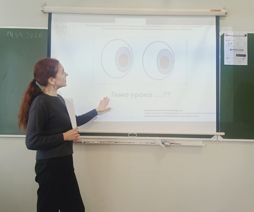 В рамках "Весенней недели психологии" с 13 по 17 апреля 2026 года педагог-психолог БОУ "ЦО и КСД" Матвеева А.В. провела интерактивное занятие с обучающимися среднего звена МБОУ "СОШ № 23" г. Чебоксары на тему правил безопасного поведения в сети Интернет.