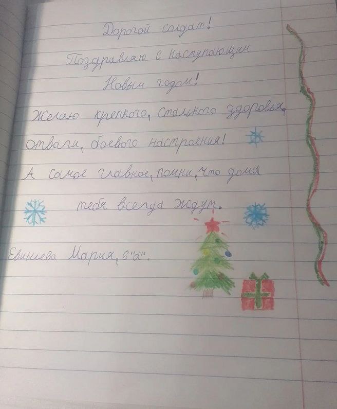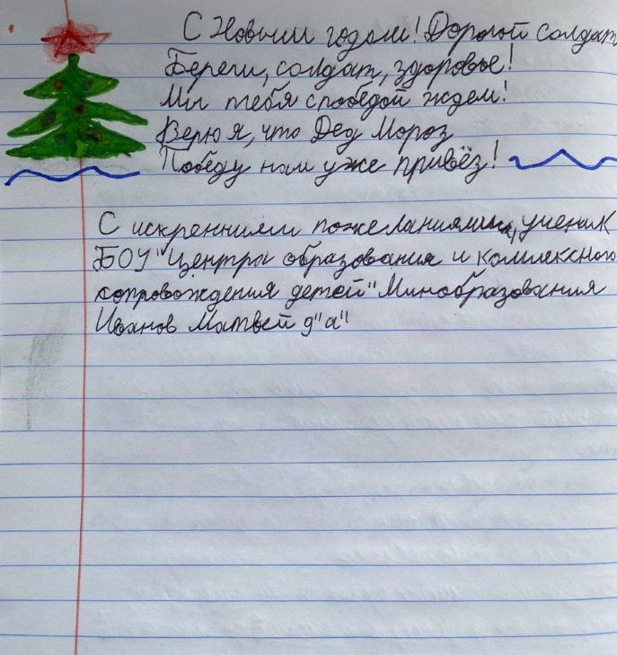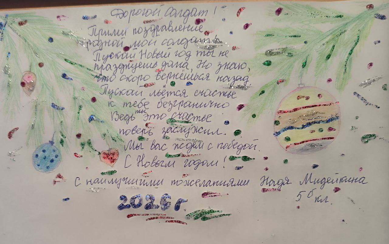 2 декабря обучающиеся БОУ "Центр образования и комплексного сопровождения детей" Минобразования Чувашии стали участниками акции под названием "Новогодняя открытка солдату". В мероприятии приняли участие талантливые ребята из разных классов: - Иванов Матвей, 9а - Николаев Николай, 10а - Евишева Мария, 6а - Григорьева Камилла, 6б - Кожевников Кирилл, 11б - Мидейкина Н.А., 5б - Исакова Дарья, 4б - Кузьмин Владимир, 3а - Полякова Ольга, 11а - Самонов Даниил, 9в - Лисин Сергей, 6в - Иванов Матвей, 9а Цель акции — создать праздничное настроение и поддержать наших защитников, отправив им поздравительные открытки с добрыми пожеланиями и пожеланиями мирного неба. Ребята проявили креативность и творчество, понимая важность своих слов для тех, кто защищает нашу страну. Мы гордимся нашими участниками и надеемся, что их доброта и забота дойдут до каждого солдата, подарив им немного тепла и радости в преддверии Нового года! | |