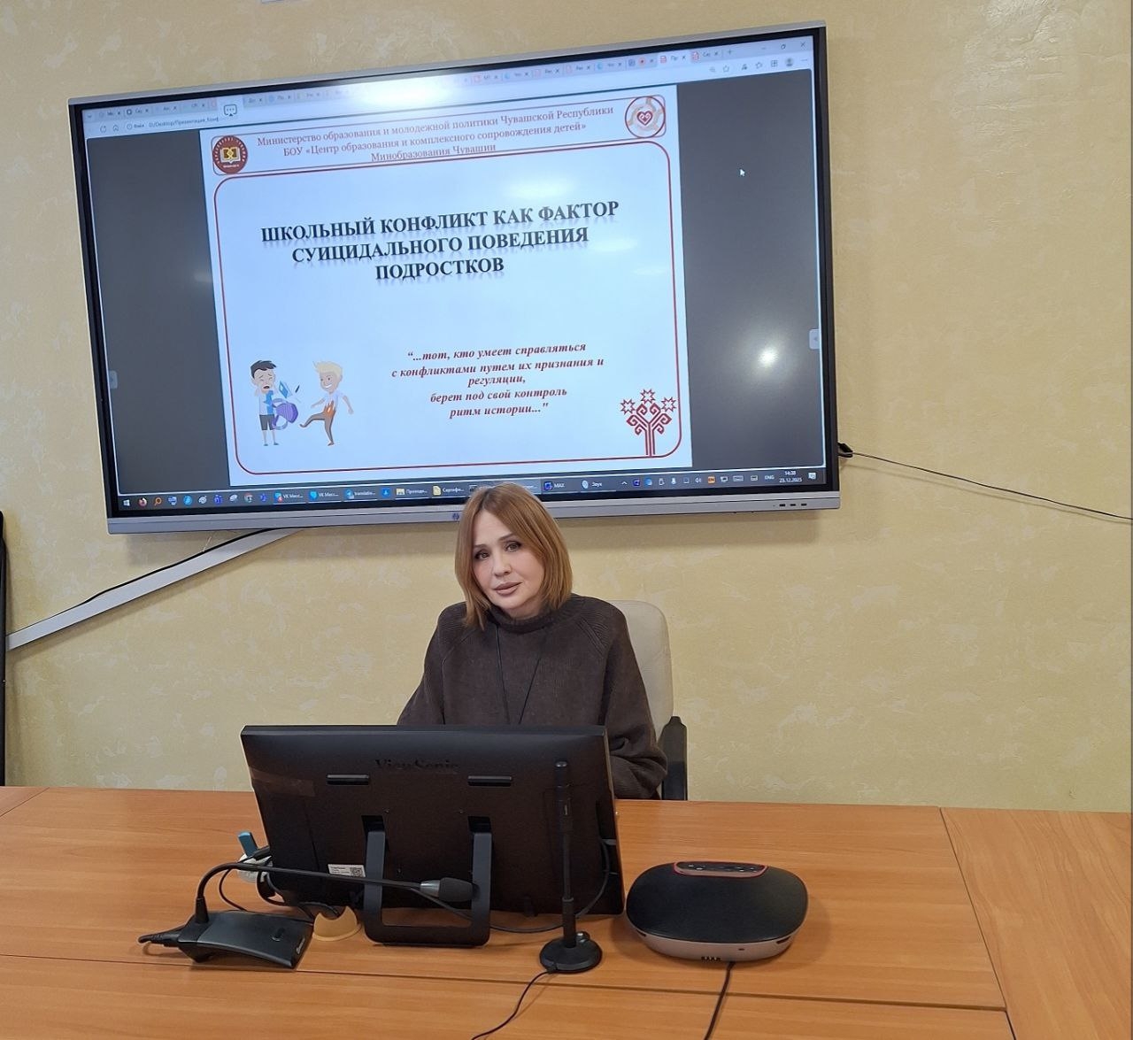 23 декабря 2025 года на базе БОУ "Центра образования и комплексного сопровождения детей" Минобразования Чувашии прошёл вебинар на тему: "Школьный конфликт как фактор суицидального поведения подростков". Мероприятие собрало специалистов социально-психологических служб, социальных педагогов и педагогов образовательных организаций. В рамках вебинара обсуждались причины и последствия школьных конфликтов, а также методы профилактики суицидального поведения среди подростков. Участники получили рекомендации по работе с детьми в конфликтных ситуациях и узнали о современных подходах к поддержке психоэмоционального состояния учащихся.
